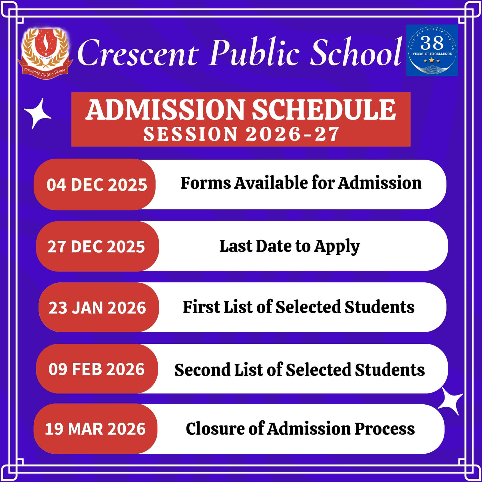 "New academic session starts from April every year, Name of those seeking admission to school are registered after completion and submission of the prescribed registration form on or before its due date as published in the Newspaper."